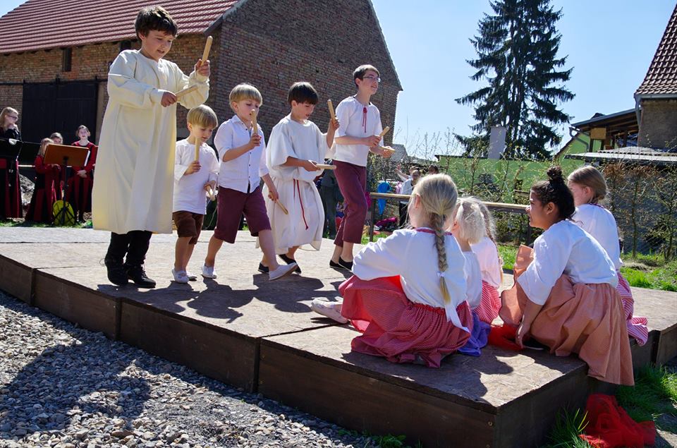 Velikonoční triduum jsme si letos zpestřili křížovou cestou v přírodě na Velký pátek. Vyrazili jsme od kapličky u Zdislaviny studánky směrem na janovický hřbitov, odtud do nedalekých Pusteven a poté přes pastviny okolo Markvartického dubu zpět do Jablonného. Na Bílou sobotu vystupovala Patašpička ve skanzenu na Vísecké rychtě v Kravařích, kde uvedla představení Barborky a poté následovala výuka irského, francouzského i českého tance.
